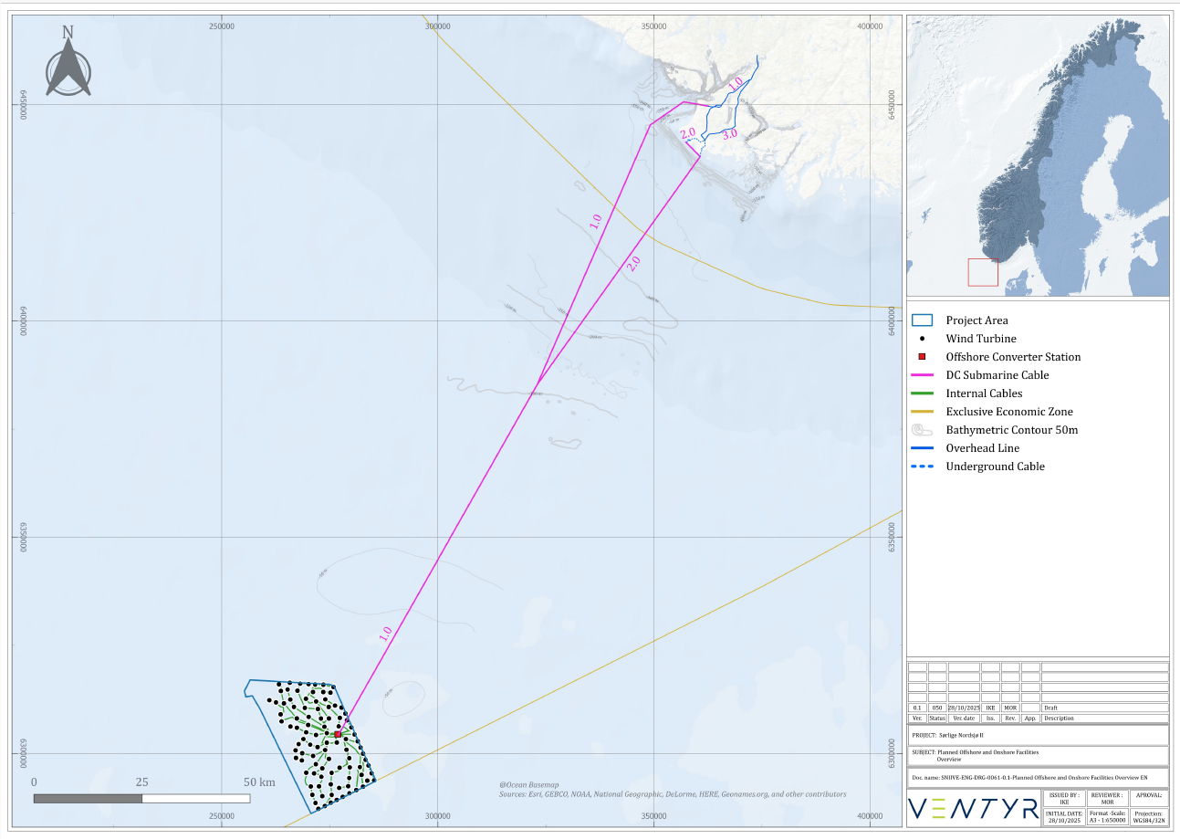 På denne nettsiden finner du informasjon om de alternative kabeltraseene for ilandføring, bakgrunnen for hvorfor enkelte alternativer er utelukket basert på en utvidet mulighetsstudie, samt prosessen frem mot søknadsfristen for konsesjon om nettilknytning til NVE, som er satt til utgangen av 2026.
